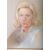 A retro vintage mid 20th century circa 1970s pastel & chalk portrait picture of a lady set within a canvas frame. measures 65cm x 55cm