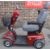 FreeRider - Mayfair - Mobility scooter. With grey vinyl seat, pull up black arm rests. Instruction manual and power cable / box. Chrome front bump bar, and a pull bar to rear. In a red colourway. Tested at the time of arrival in working order. Not tried charging. Measures approx.