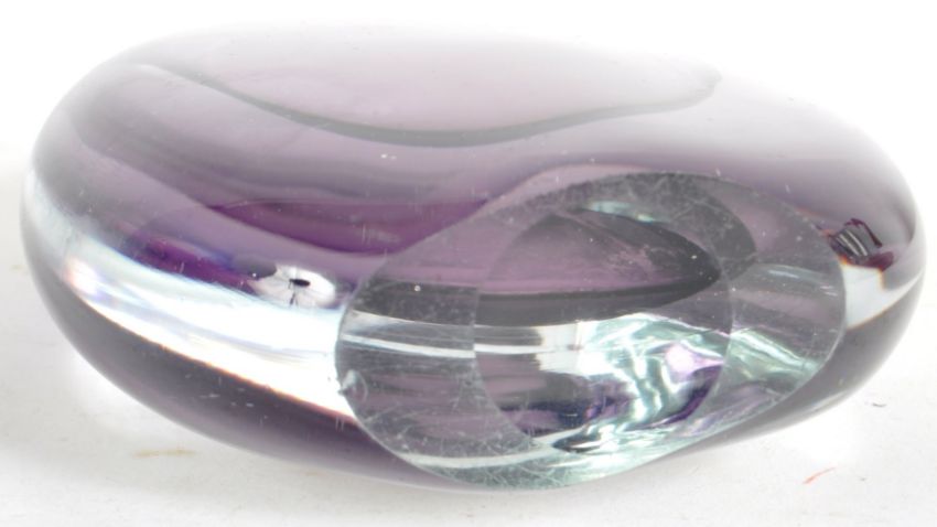 Gunnar Nylund for Strömbergshyttan - A retro 20th Century Scandinavian studio art glass vase with cased purple centre. Unsigned. Measures approx; 15cm x 12cm.