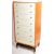 G Plan - China White - A retro mid 20th Century oak upright pedestal form having a bank seven drawers each with brass knob handles. All raised on an atomic ebonised legs. Measures approx; 128cm x 61cm x 40cm.