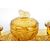 An Art Deco 20th century circa 1920s amber glass Sowerby butterfly dressing table vanity set to include pots with lid, candle sticks & tray, together with a Murano glass clown.