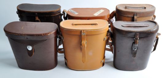 A collection of 6 x vintage leather binocular cases from various makers and for various models.