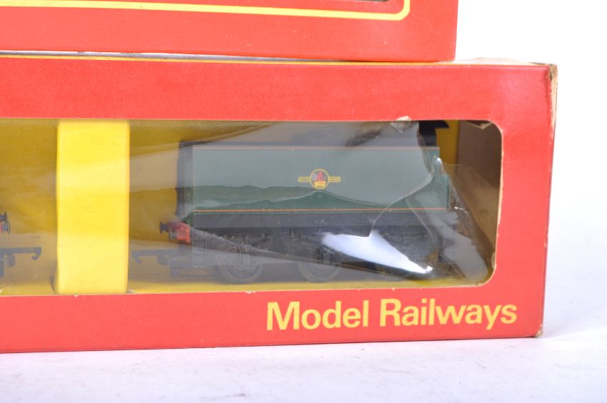 Two original vintage Triang / Tri-ang Hornby 00 gauge model railway trainset locomotive engines comprising; R356 S Battle of Britain Class ' Winston Churchill ' loco with R38 tender and R59S Class 3MT 2-6-2 Tank loco.