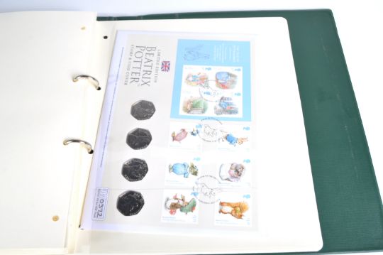 Stamps / Coins - The Beatrix Potter UK Coin Cover Collection - limited edition cover set featuring the full set of Beatrix Potter / Peter Rabbit themed 50p coin covers, as well as the Limited Edition Stamp & Coin Cover featuring 4x 50p coins. Housed in album. All as new / mint.