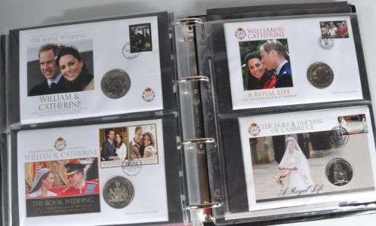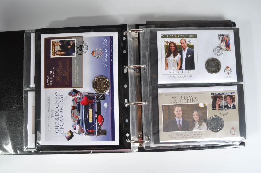 Coins - Royal Mail Coin Covers - a large album of assorted coin covers of various theme, to include; Northern Ireland, End Of The War, Berlin Airlift, Elizabeth Era, Battle Of Hastings, 2010 England Football, William & Kate, A Royal Life, Shakespeare, Battle Of Waterloo, and others. Face value of decimal coins approx £40 (estimated, not guaranteed). Many Crowns, some £5 and £2 also present. All as new / mint, housed in album.