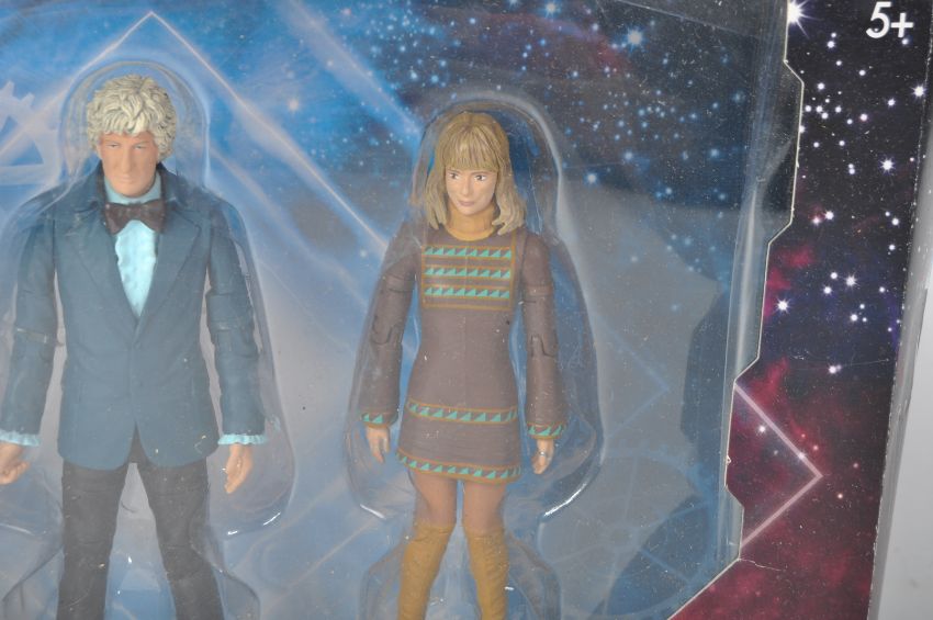 Doctor Who - Character Options - a Third Doctor Collector Figure set featuring The Master, The Third Doctor and Jo Grant. Highly detailed action figures. Contents mint and unused, box with some wear but remains factory sealed.