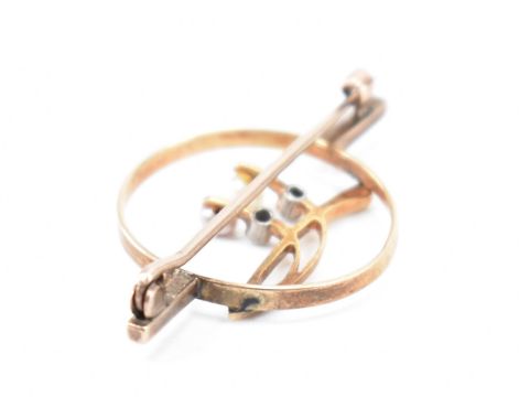 A 1930s gold diamond and pearl brooch pin. The brooch in an open work design having two diamond and pearl drops in a floral motif having C clasp fastener verso. Weight 2.4g. Measures 3.5cm.