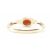 A hallmarked 9ct yellow garnet single stone ring. The ring having an oval cut bezel set garnet flanked by gold granules to a pinched shank. Hallmarked for London. Approx size O.5. Total weight approx 2.2g. Stone size approx 3.5 x 5.5 x 2.4mm.