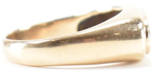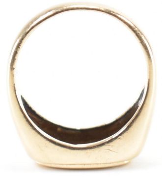 A hallmarked 9ct gold signet ring. The ring having a blank oval cartouche to plain band. Hallmarked Birmingham. Weight 6g. Size P.5.