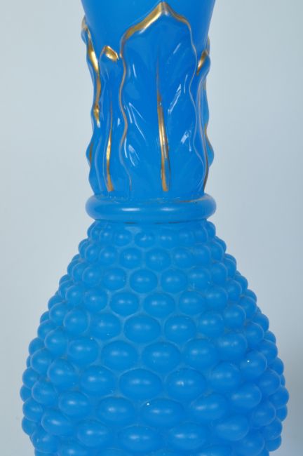 A pair of 19th century Victorian blue glass hobnail vases. Each of baluster form with gilded flash work decoration to the leading edges