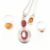 An assortment of silver stone set jewellery. The lot to include; two amber cabochon bezel set rings (sizes P.5 & M.5), an amber set pendant on cable link chain & ruby composite stone set pendant to popcorn chain. All marked 925 or test as silver. Total weight approx 26.0g.