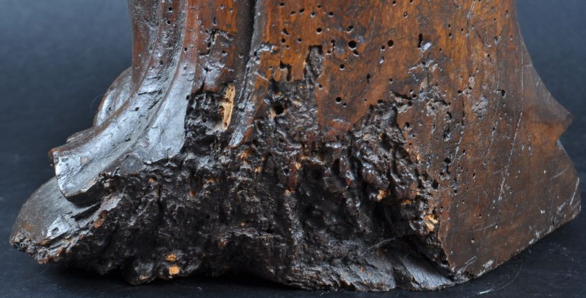 A large 19th Century carved religious ecclesiastical figurine depicting a Saint or Holy figure. The figure modelled standing with hand outstretched and plain facial features raised on shaped plinth base. Measures approx; 65cm tall.