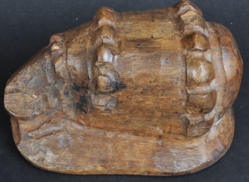 A pair of 18th Century carved walnut wall panels / plaques in the form of cornucopia shells. Both on domed back panels with gentle carved points and scrolled ends. Measures approx; 18cm x 12cm.
