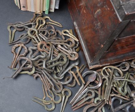 A very large, a life time collection of Jew's Harps, with approximately 500 individual instruments, taking different forms and designs, dating from the early 16th to the 20th century from different counties of origin. Together with a 19th century collectors cabinet and a number of related reference books.  The Jew's harp, also known as jaw harp, vargan, mouth harp, gewgaw, guimbard, khomus, Ozark harp, Berimbau de boca, murchunga or mungiga, is a lamellophone instrument, consisting of a flexible metal or bamboo tongue or reed attached to a frame. Contrary to the name, the harp originated in Mongolia and has no relation to the Jewish people.