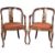 A matching pair of 19th Century English red lacquered chinoiserie decorated armchairs / carver chairs having curved backrest terminating to turned supported armrests. Single slate backrest with velour padded seat rests. Each raised on on cabriole supports. Each measures approx; 88cm x 53cm x 54cm.