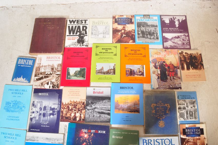 Of Bristol Interest - A large collection of vintage 20th century Bristol related and surrounding area to include "The Floating Harbour: A Landscape History of Bristol City Docks", "Historic England Bristol: Unique Images from the archives of historic England", James Belsey & Helen Reid "West at war", various volumes of "Bristol on Old Postcards", The Home Front 1939 - 1945 "Evacuation", Britain in Old Photographs "Bristol 1850 - 1919", Images of England "Kingswood and Two Mile Hill", "Bristol As It Was and As It Is: A Record of Fifty Years Progress", "Bristol: A Pictorial History", & many more.