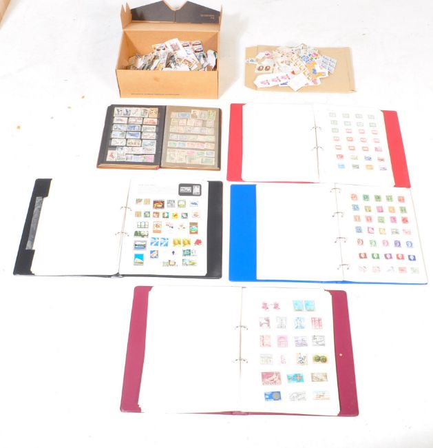 An assortment of 20th century British and foreign stamps to include a variety of folders organised in alphabetical order by country alongside a collection of loose franked stamps.