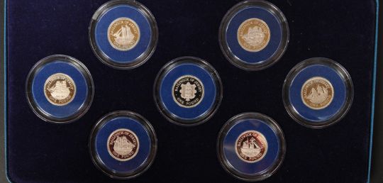 The Jersey shipbuilding series 1991 - 1994 silver proof one pound collection. With certificates 7 £1 coins In a blue case.