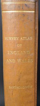 Books. Bartholomew J.G.- A leather bound copy of ' The survey Atlas of England and Wales ' dated 1903 having a series  84 plates of maps and plans