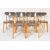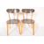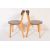 A set of six contemporary solid oak frame dining chairs. The light oak frames finished with round 'penny' grey wooden seat bases with elliptical back rests. Measures approx. 82cm x 45cm x 43cm.