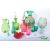 A collection of 19th Century and later glass, comprising of Whitefriars style vase, with some glass decanters in green and cranberry, large jug with woven protector and more drinking gasses with glass spoon and bird shape dish. Measures approx. 27cm.