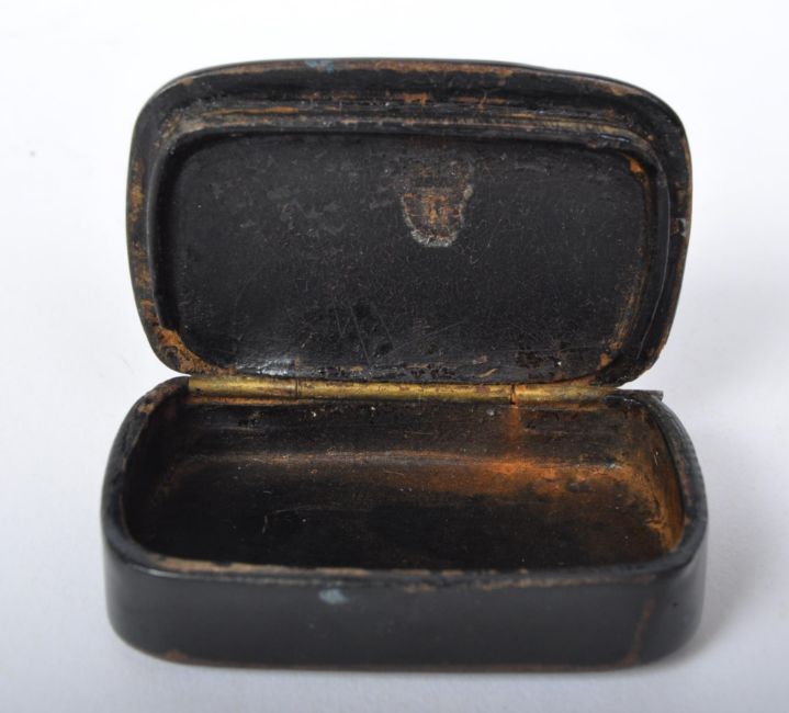 A 19th century Papier Mache snuff box of rectangular form with abalone set detailing together with a chase decorated silver EPNS cigarette case