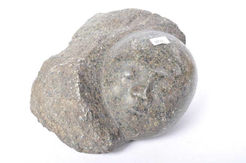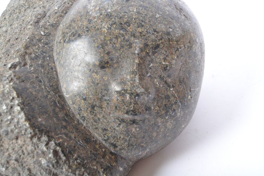 A vintage 20th Century granite stone carving of a child babies face. Measures approx. 22cm x 12cm x 14cm