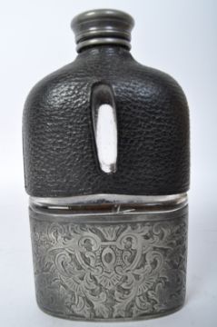 Two 19th century Victorian silver plate and glass gents hip flaks with engraving to base. Measures 16cm length.