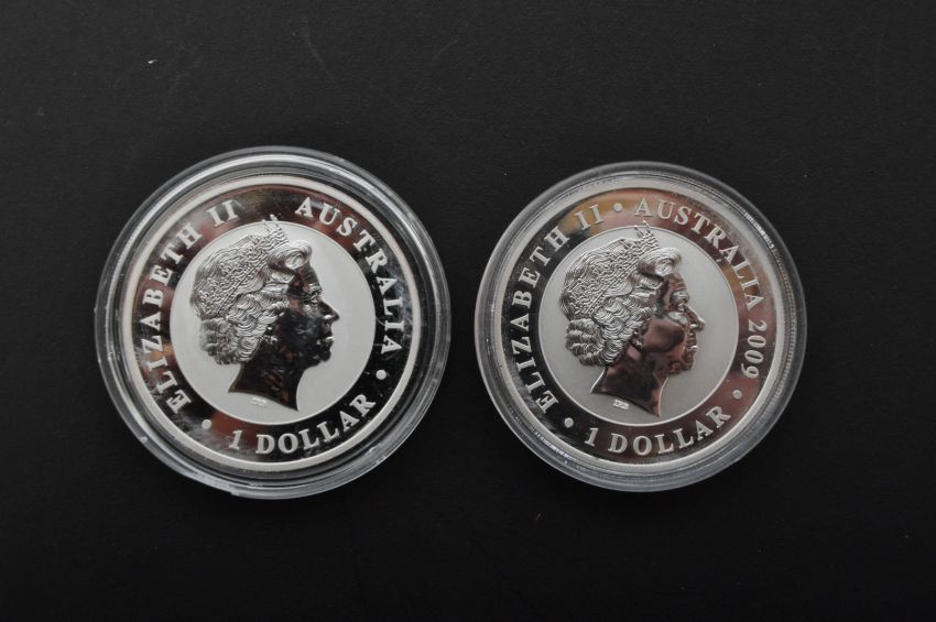 AUSTRALIA. Two 1oz 999 silver $1 dollar coins. The lot to include a 2009  & 2011 Australian Koala $1 dollar fine 999 silver coin. Each coin having Queen ELizabeth II right profile to obverse, and koalas to the reverse. Each weights approx. 28gr.