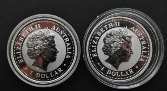 AUSTRALIA. Two 1oz 999 silver $1 dollar coins. The lot to include a 2005 & 2009 Australian Kookaburra $1 dollar fine 999 silver coin. Each coin having Queen ELizabeth II right profile to obverse, and kookaburra to the reverse. Each weights approx. 28gr.