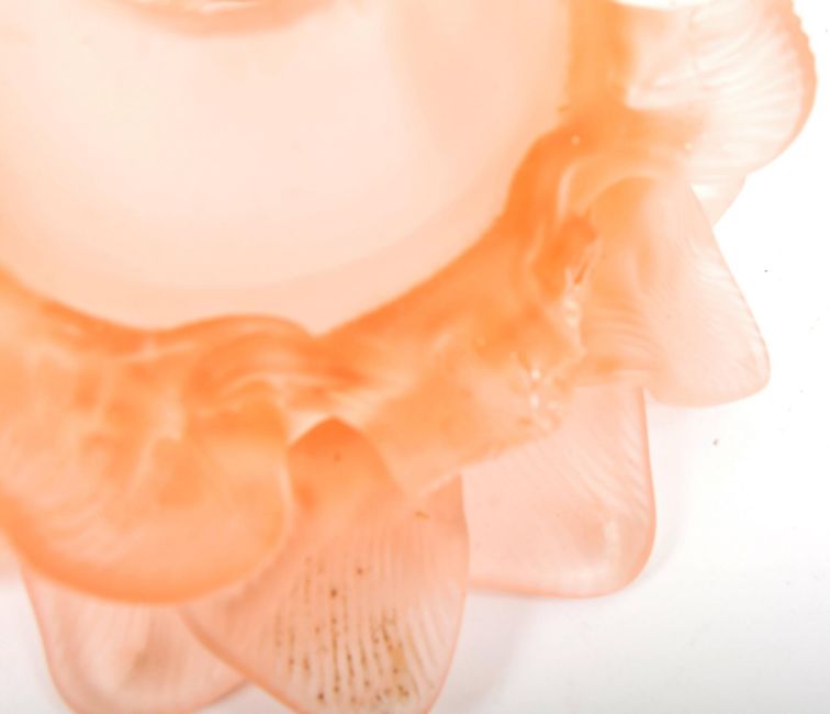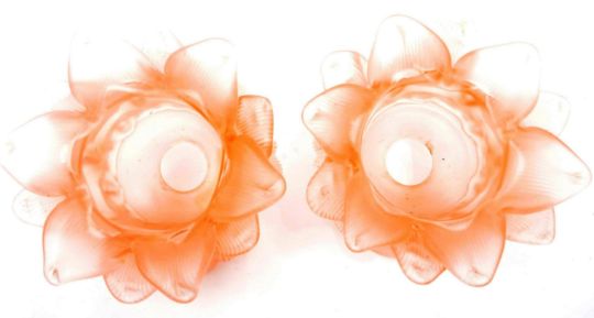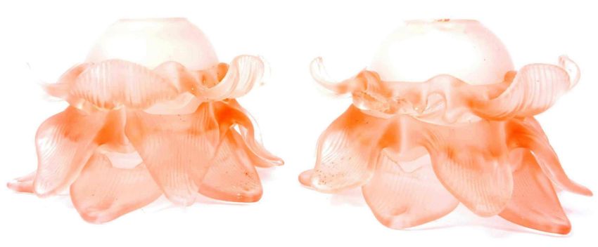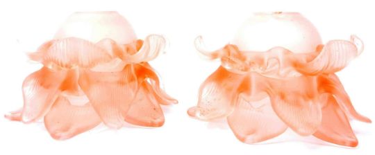 A pair of vintage 20th century circa. 1940's pressed glass pink tulip light shades. Measures 13cm diameter.