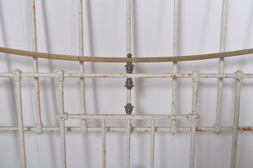 A 19th Century Victorian brass and iron double bed finished in white with straight and curved supports throughout. Measures approx; 137cm x 140cm.