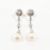 A pair of antique pearl and diamond drop earrings. The earrings having pearls suspended from chains bezel set with three round cut diamonds, and further diamond accents stones to the mounts. Tests indicate white gold. Measures 3.5cm. Weight 5.9g.