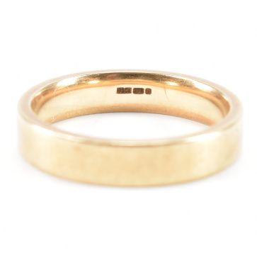 A hallmarked 9ct gold band ring. The ring in plain form Hallmarked Sheffield. Weight 3.7g. Size N.