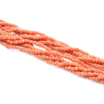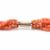 A 19th Century Victorian five strand coral necklace. The necklace threaded with red coral beads with a faceted cylinder clasp. Measures 17 inches.