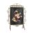 A 19th Century Victorian brass fire screen. Ornate form with scrollwork frame and central glass mirror panel reverse painted with floral spray. Measures approx; 64cm x 63cm x 30cm.