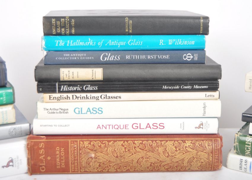 Glass - A collection of collector's books on glass. To include: Illustrated Dictionary Of Glass, Irish Glass, Historic Glass, Antique Glass, Glass Through The Ages, Old Glass and many others. 23x books in total.