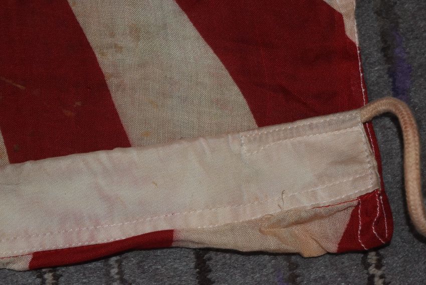 A WWII Second World War interest Imperial Japanese Army ' Rising Sun ' flag. White, with central red sun motif. No maker's marks or date to the seam. Measures approx. 90x140cm.