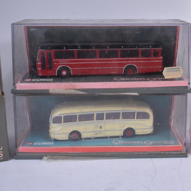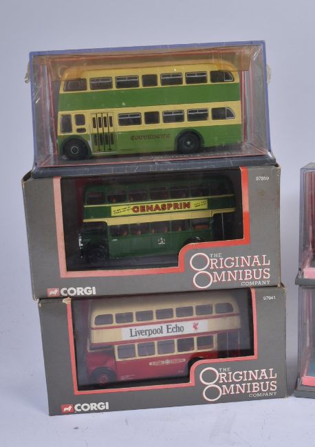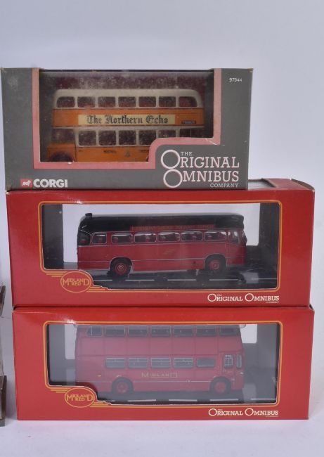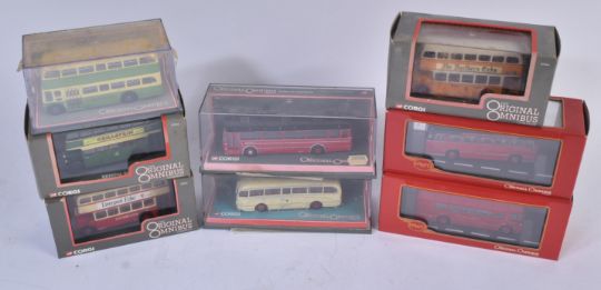 A collection of x8 Corgi Original Omnibus boxed diecast model buses to include; Leyland PD2/20 St Helens Corporation, Bristol K5G Bristol Tramways, Leyland Leopard Birmingham & Midland Motor Omnibus and others. Contents appearing unused, some wear to boxes.