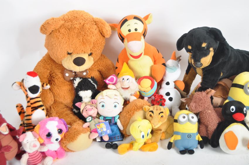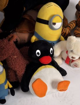 Teddy Bears - a collection of x 22 assorted teddy bears / plush toys to include: Monzana, Disney, Pingu, Despicable Me 2, and others. Tallest measures approx. 52cm