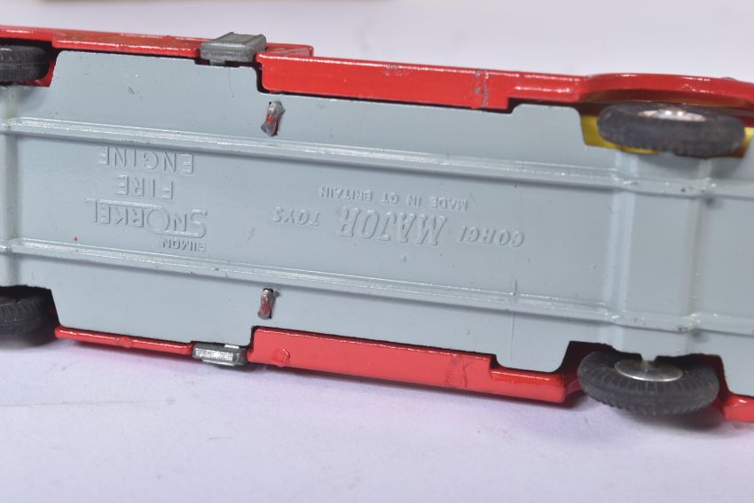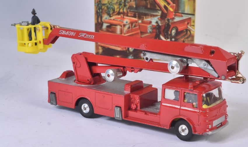 An original vintage Corgi Major Toys boxed diecast model No. 1127 Simon Snorkel Fire Engine. The model appearing near mint with original Fireman figures present. Housed within VG original box.