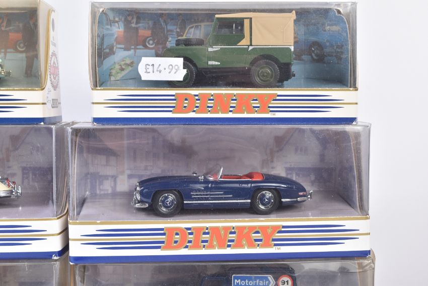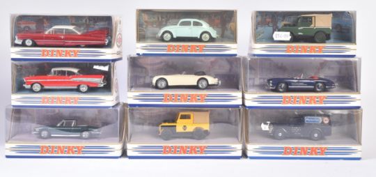 A collection of x9 vintage Matchbox Dinky diecast model cars to include; DY9-B Land Rover, DY-7 Cadillac Coupe De Ville, DY-2 Chevrolet Bel Air and others. Contents appearing unused, within original boxes.