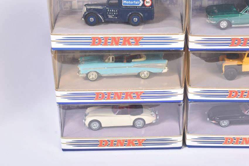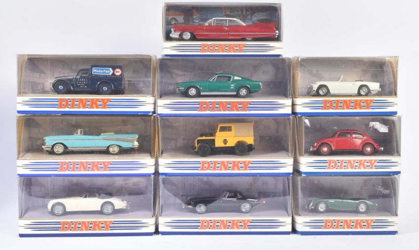 A collection of x10 vintage Matchbox Dinky diecast model cars to include; DY-30 Austin Healey 100 BN2, DY6-C 1951 Volkswagen, DY-20 Triumph TR4A-IRS and others. Contents appearing unused, within original boxes.