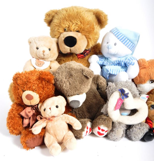 Teddy Bears - a collection of x 12 assorted teddy bears / plush toys to include: Huggables, Cuddles Collection, Play, A.S Watson, Kandy Toys, Paws, Harrods and others. Tallest measures approx. 64cm