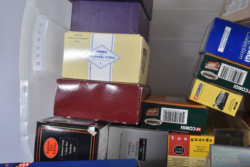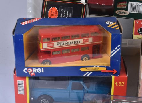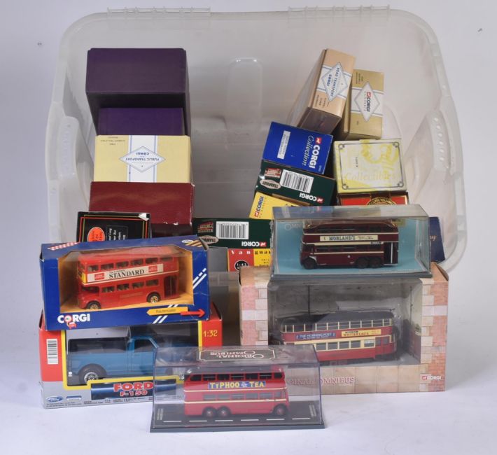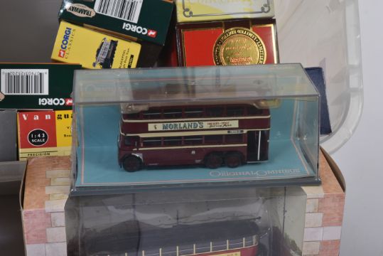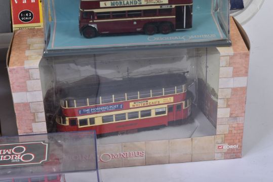 A collection of assorted diecast model cars and other vehicles of various scales and makers to include; Corgi Original Omnibus, Corgi Tramway Collection, Corgi Public Transport, EFE Buses, Matchbox Models of Yesteryear and others.