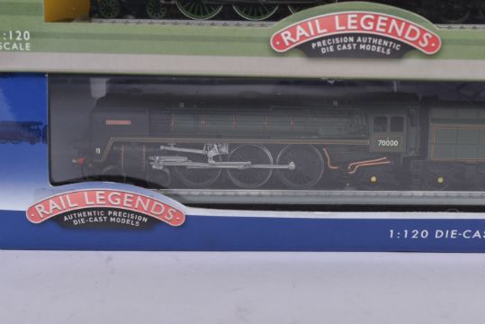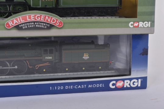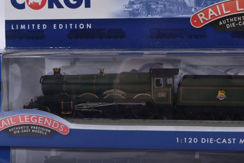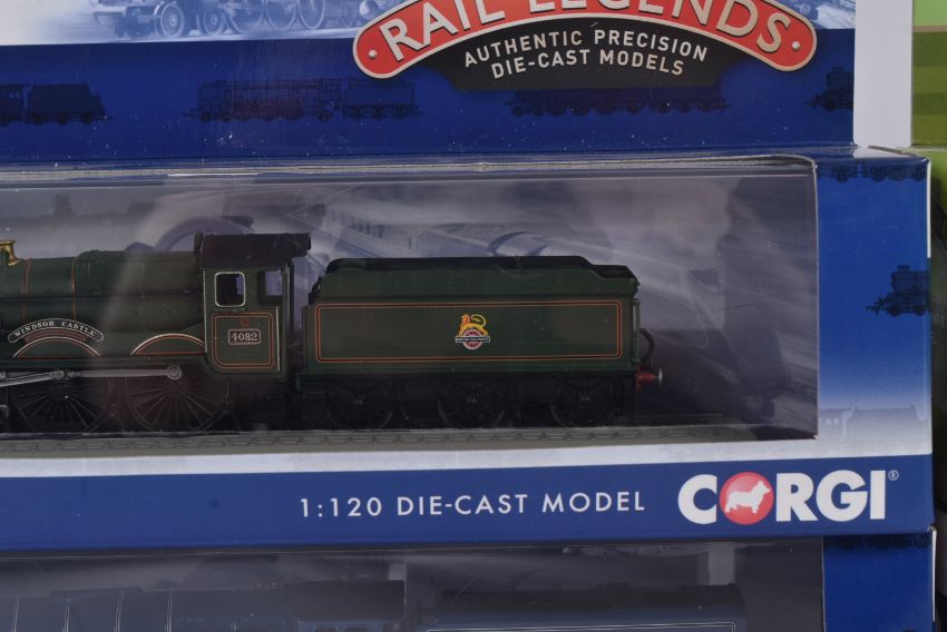 Corgi Rail Legends - collection of four 1/120 scale diecast model static locomotive engines comprising; BR 4-6-2 Peppercorn Class Tornado, BR 4-6-0 Cattle Class Windsor Castle, BR 4-6-2 Britannia 7000 and the Flying Scotsman. Contents mint in box.
