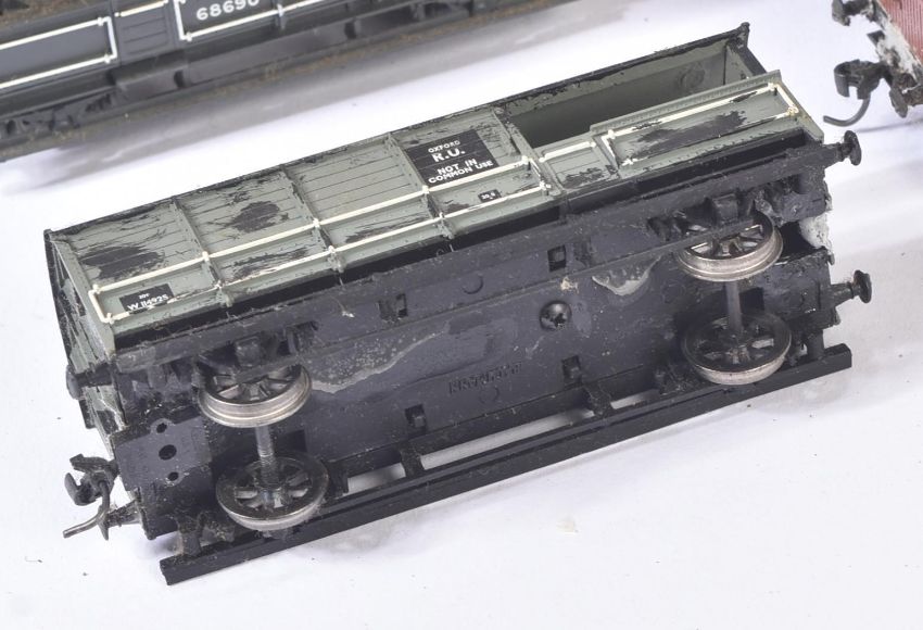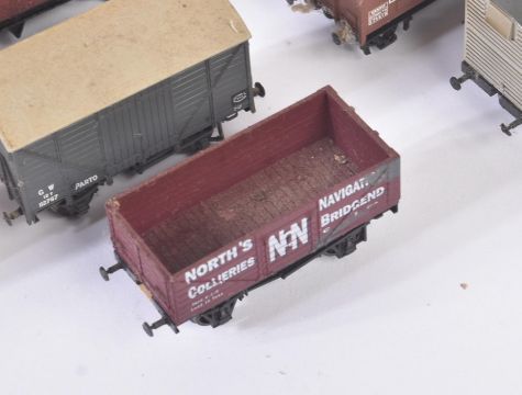 A collection of assorted OO gauge model railway trainset locomotive rolling stock wagons, coach / carriages and a selection of trackside passengers / figures. Coaches to include Graham Farish Pullman, Hornby Dublo passenger coaches and others.