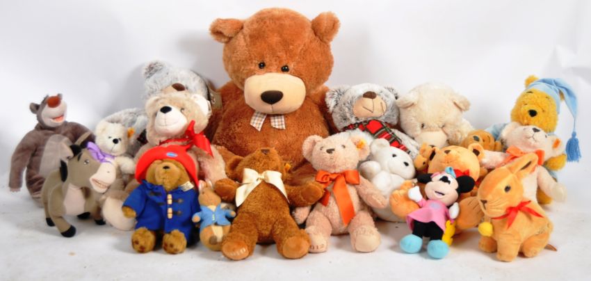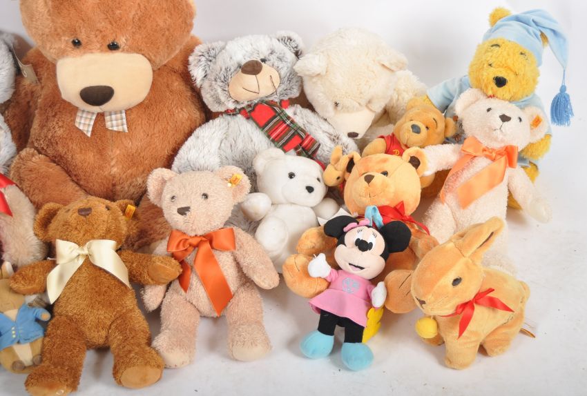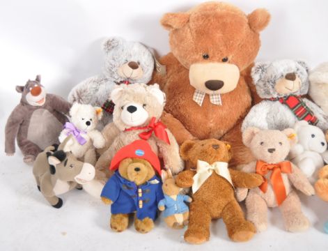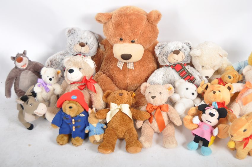 Teddy Bears - a collection of x 21 assorted teddy bears / plush toys to include: Soft Sensations, Beales, Keel Toys, Disney, Paddington Bear and others. Tallest measures approx. 85 cm