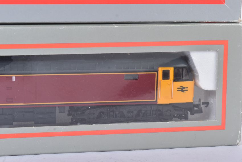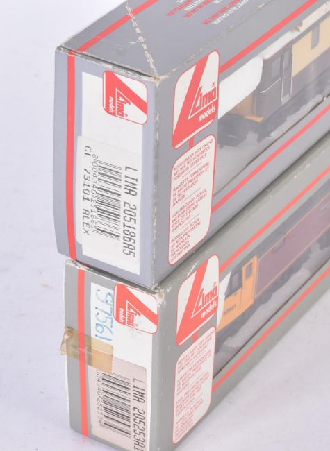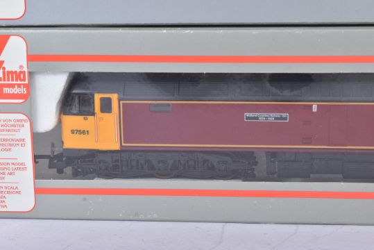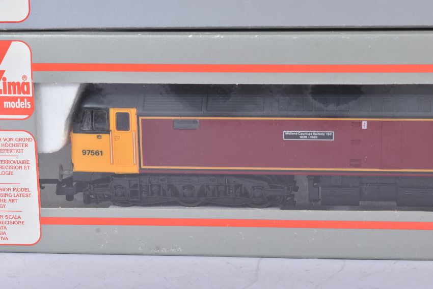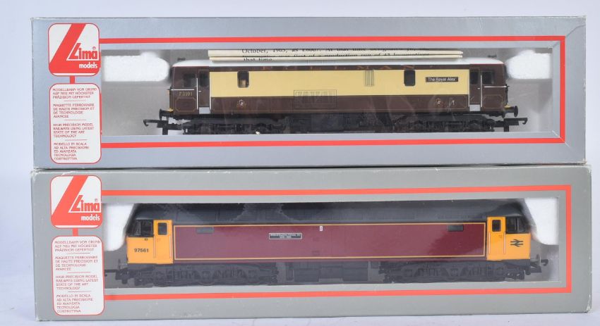 Two Lima made OO gauge model railway diesel trainset locomotives comprising; 205253b Class 47 97561 'Midland Counties Railway 150' in maroon with yellow cabs and 205186 Class 73 73101 'The Royal Alex' in Pullman umber and cream. Housed within original boxes.