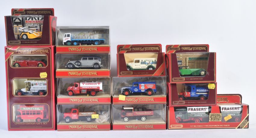 A collection of vintage Matchbox Models of Yesteryear boxed diecast model cars. Various haulage, public transport and advertising related examples to include 1930 Mac AC, G.M.C Van, Yorkshire Type WA Wagon and others.